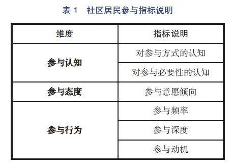 学界关于社区居民参与影响因素的研究成果较为丰富。比如,“认知-态度-行为”模型理论认为,“对起因和影响的认知程度决定了行动的态度,而态度决定了行动意愿”。有学者提出“参与认知-参与意愿-参与行为”的关系假设,研究发现参与认知对参与行为有显著正向影响,参与意愿对参与行为有显著正向影响。有研究发现:居民的参与意愿和参与能力匹配不佳,阻碍参与态度向参与行动转化;群体层面的社区共同体心理认同偏弱,导致社区参与的整体持续性不强。总之,社区居民的参与行为和参与动机、参与态度、知觉行为控制、主观规范有着密切关系。