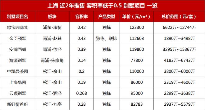放眼全上海,目前容积率低于0.5的在售别墅盘,不超过10个,主力总价3000-6000万,个别房源总价高达1.5亿。璟云里售楼处电话: